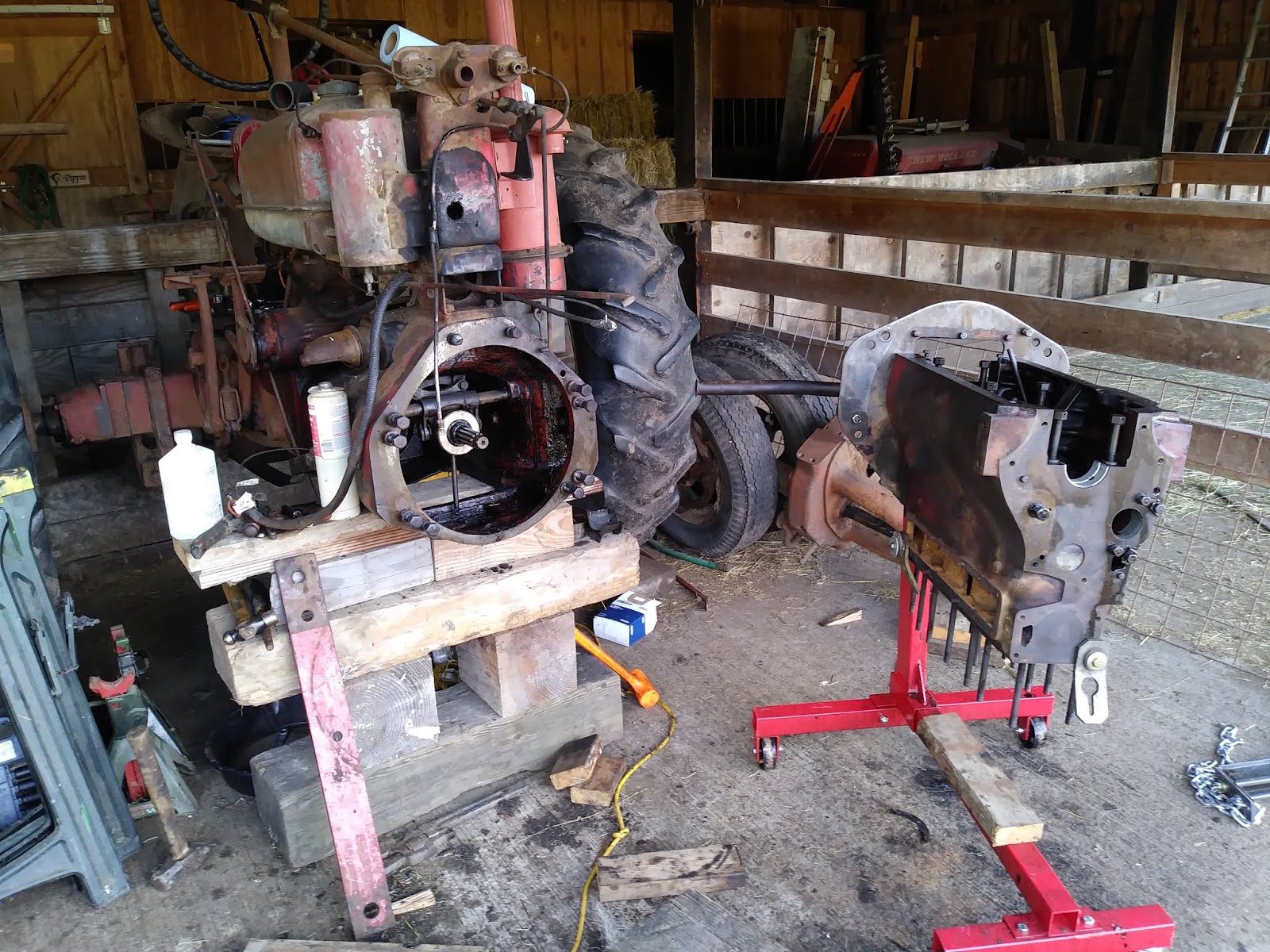 | Dad working on the clutch before we connect the block to the rest of the tractor |